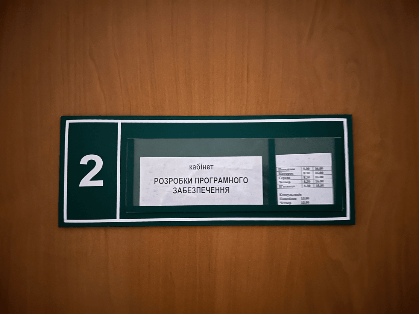 Кабінет розташований на другому поверсі головного корпусу. Простір має достатню кількість робочих місць для індивідуальної роботи студентів під час і після занять. Універсальність обладнання дозволяє не прив'язувати заняття до конкретного кабінету.